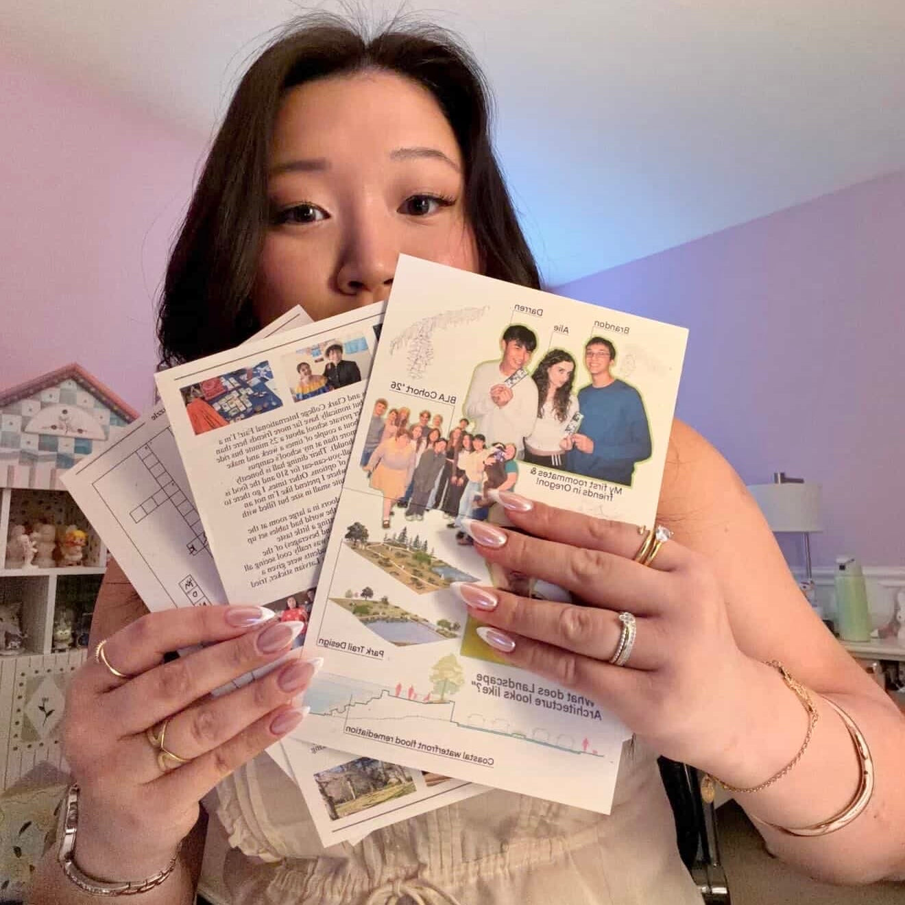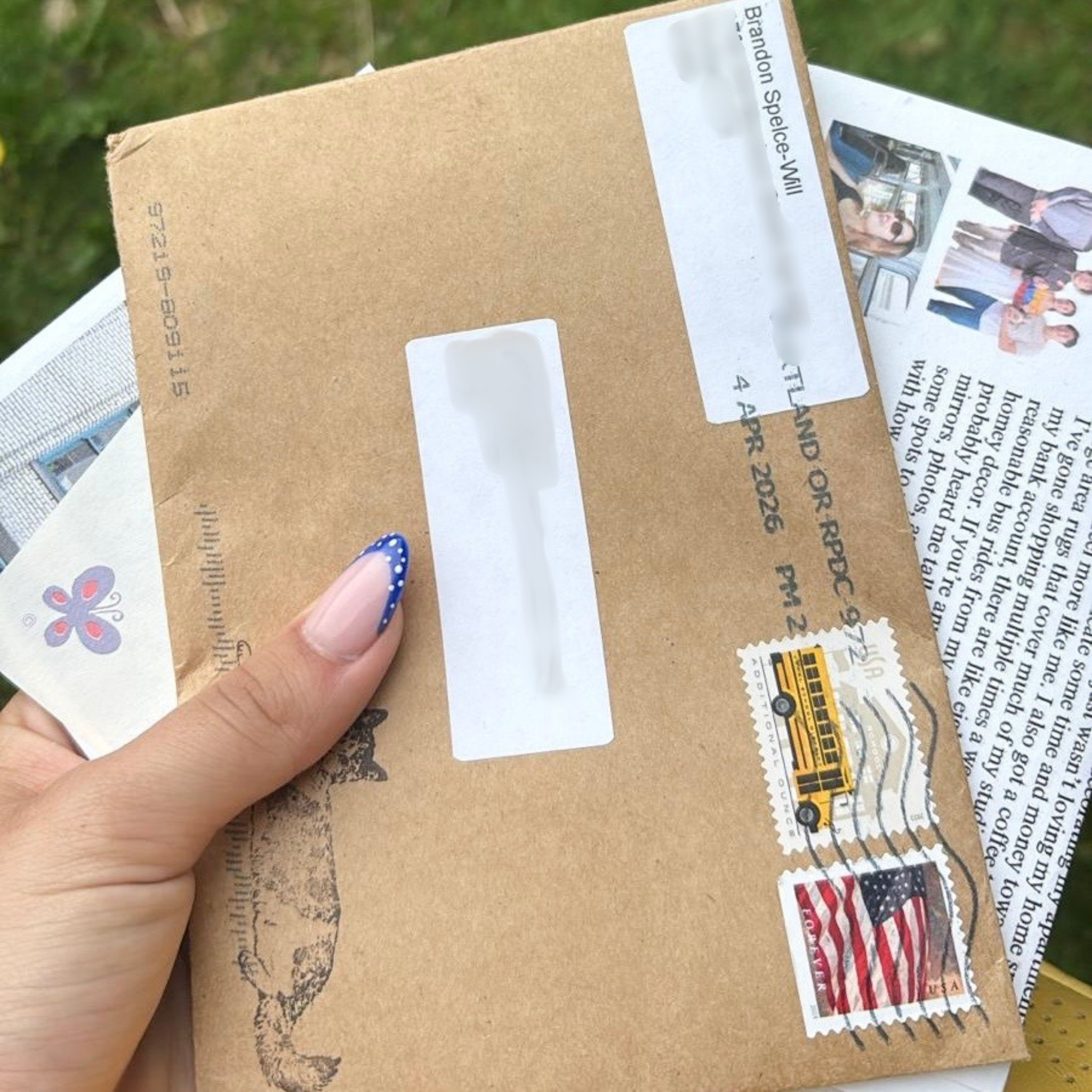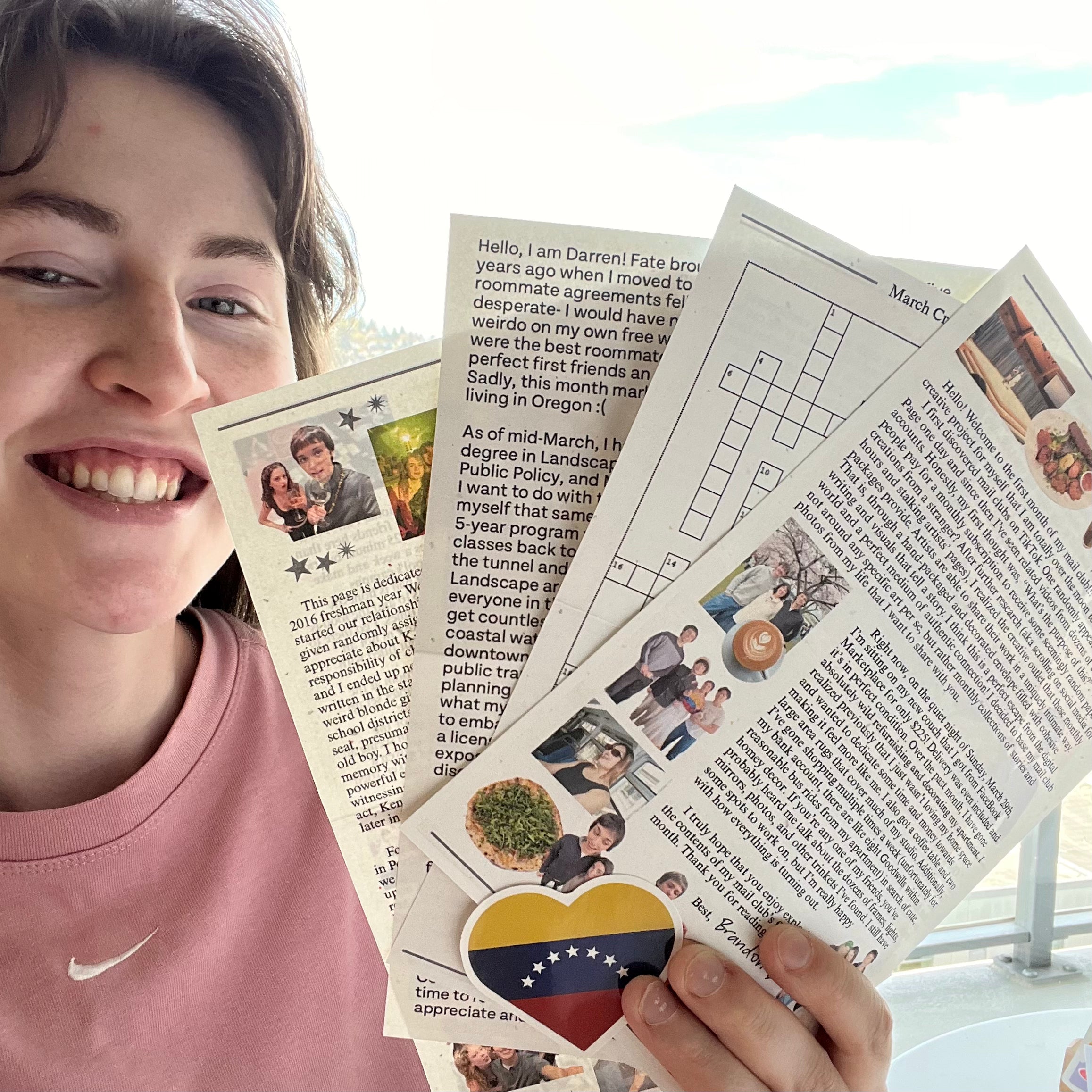 - Multiple letters filled with stories and photo collages printed and packaged myself on quality cardstock, always double-sided.